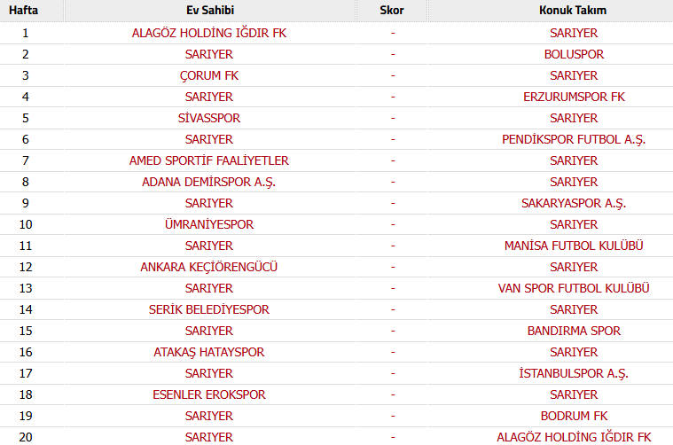 Sarıyerspor Fikstür 2026